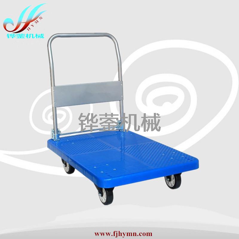 该平板手推车是一种平面运输设备,也是以人力推、拉的四轮搬运车辆。在小范围内作业具有方便性和实用性。广泛地适用于仓库、货运站、制造工厂、百货公司、物流中心、短程配送。